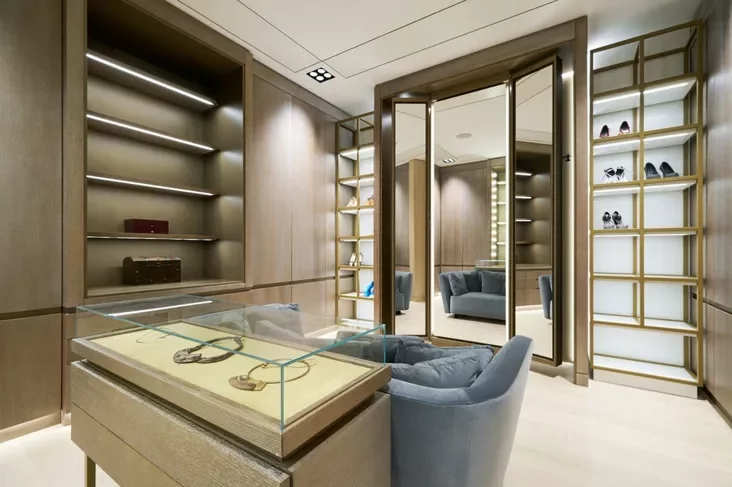 Asablivaj uvahi zasłuhoŭvaje harderobnaja, jakaja bolš nahadvaje pamiaškańnie bucika: vitryny, padśvietka i pradumanaja arhanizacyja zachoŭvańnia.