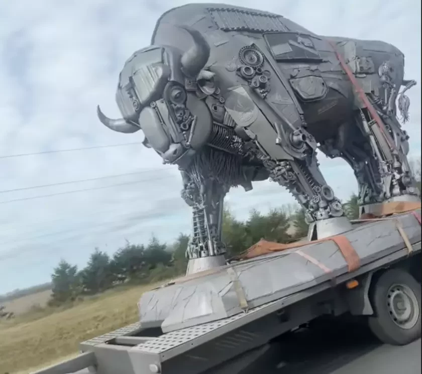 Videa z hihanckaj fihuraj zubra, jakuju pieravozili pa trasie M1, za sutki nabrała ŭ tyktoku bolš za 160 tysiač prahladaŭ. Karystalniki abmiarkoŭvajuć, kudy mienavita viazuć niezvyčajnuju skulpturu i chto stvaryŭ takuju rabotu, piša vydańnie «Pieršy».