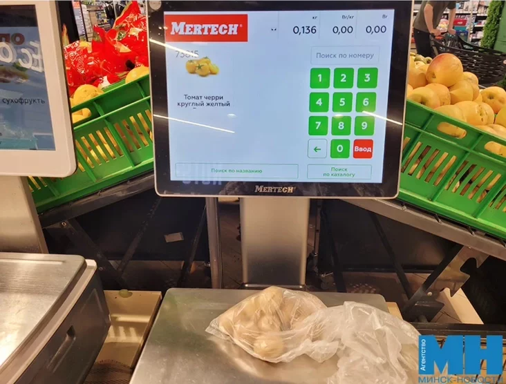 U hipiermarkiecie na praśpiekcie Pieramožcaŭ pastavili «razumnyja» fasovačnyja vahi, jakija aŭtamatyčna raspaznajuć pakładzienyja na płatformu pradukty.
