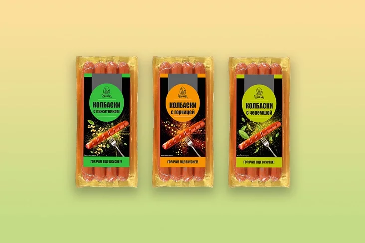 Akramia ryjetaŭ, brend papoŭniŭ liniejku smakaŭ vendžanych kaŭbasak. Tut ich taksama try: z čaramšoj, z harčycaj i z pažytnikam.