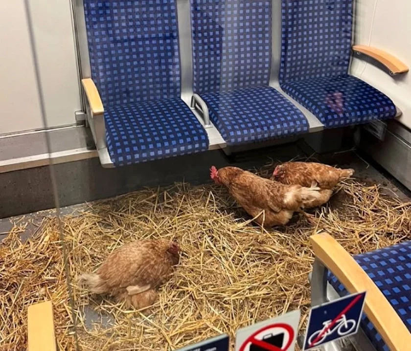 Nieviadomyja pakinuli troch kurej u pieršym kłasie elektryčki S6, što nakiroŭvałasia z Esena ŭ Kioln. I paścialili im na padłohu sałomu. Troch «bieźbiletnic» zaŭvažyli tolki na kancavoj stancyi — mašynist vyklikaŭ pažarnych i palicyju, paviedamlaje telehram-kanał «Što tam u niemcaŭ?»