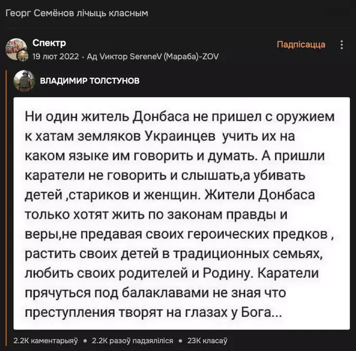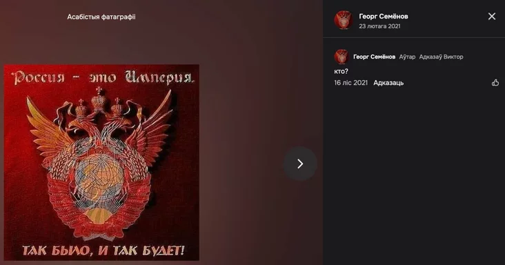 Aktyvist aktyŭna padtrymaŭ Rasiju ŭ vajnie suprać Ukrainy i šmat repościŭ tematyčnyja materyjały.