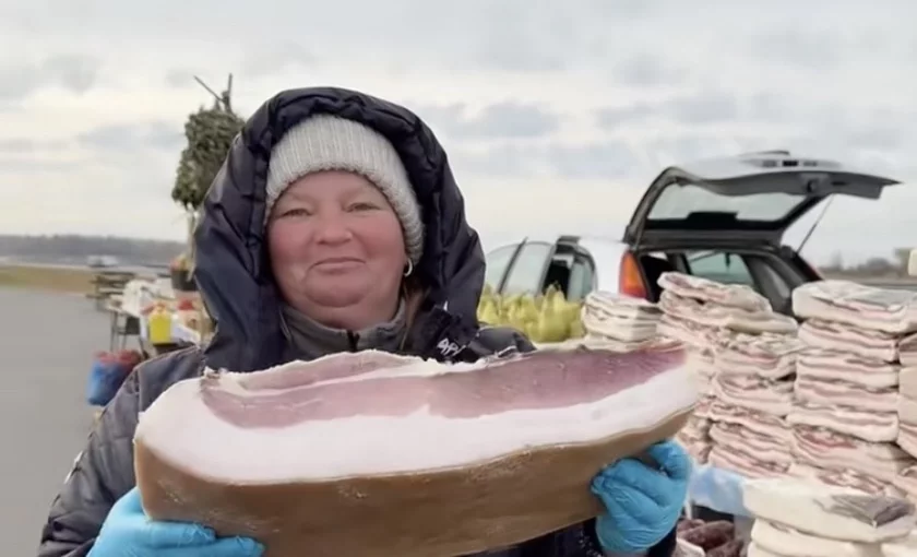 Videa, dzie haspadynia Kaciaryna narazaje na marozie toŭstaje sała, źbirajuć miljony prahladaŭ. Takoje sała ź miasnoj prasłojkaj u fiermieraŭ kaštuje 28 rubloŭ za kiłahram.