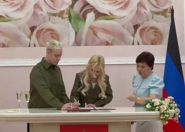 Rasijskaja danośnica i kiraŭnica Lihi biaśpiečnaha internetu Kaciaryna Mizulina i Z-śpiavak Šaman (Jarasłaŭ Dronaŭ) ažanilisia ŭ akupavanym Daniecku.