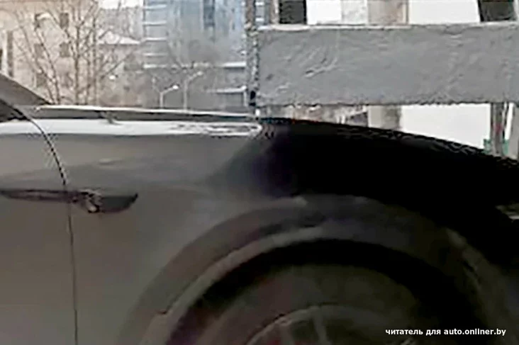 Kiroŭca Voyah prosta zajechaŭ nosam pad žalezabietonnuju kanstrukcyju leśvicy. Z bolšaści rakursaŭ moža zdacca, što kapotu kaniec. Ale nie, varta pryhledziecca, jak stanovicca vidavočnym: niekalki santymietraŭ zapasu jašče jość.
