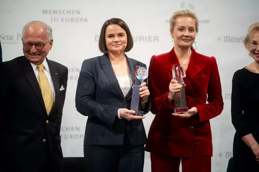 27 listapada padčas vizitu ŭ Hiermaniju Śviatłana Cichanoŭskaja była ŭznaharodžanaja premijaj Menschen in Europa «Cmiełyja žančyny za svabodu i demakratyju».