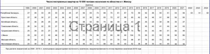 Biełaruś ža ŭ hetym rejtynhu sa svaimi 58 kvaterami ŭ hod na 10 tysiač nasielnictva (za apošnija dvaccać hadoŭ) — absalutny lidar. Pry hetym u Polščy i Litvie apošnija niekalki hadoŭ budujuć novaha žylla krychu bolš, čym u Biełarusi.