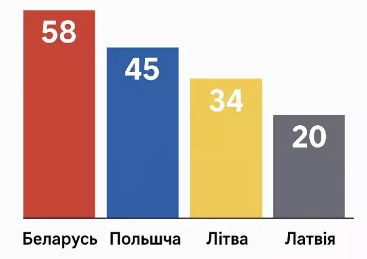 Dla paraŭnańnia voźmiem try susiednija jeŭrapiejskija krainy: Polšču, Litvu i Łatviju.