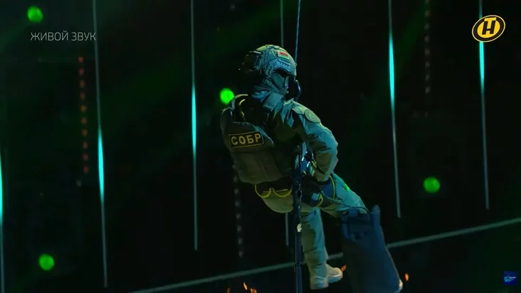 Spačatku na scenie śpievaku dapamahali maładyja ludzi, apranutyja ŭ kamuflaž i biercy. U takt miełodyi jany maršyravali, adciskalisia ad padłohi, vystaŭlali ruki, byccam trymajuć aŭtamaty i prycelvajucca. Ničoha asablivaha, zdavałasia b.