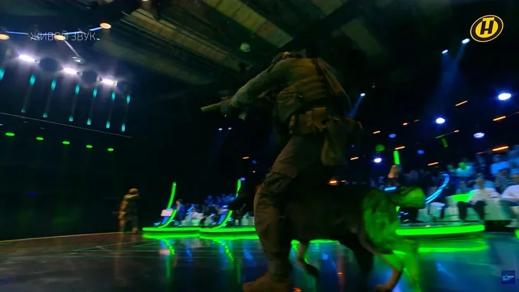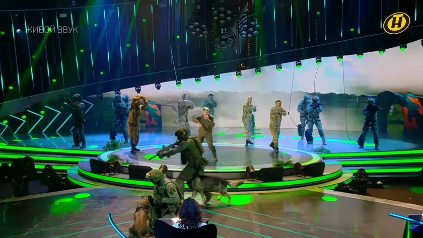 U muzyčnym šou na ANT na scenu vybiehli bajcy SACHRa z aŭtamatami i pačali stralać