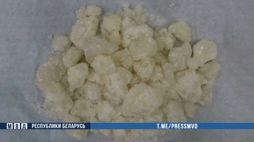 U zatrymanaha było vyjaŭlena bolš za kiłahram asabliva niebiaśpiečnaha psichatropnaha rečyva — miefiedronu, a ŭ schovankach-zakładkach — blizu 2 kh amfietaminu.