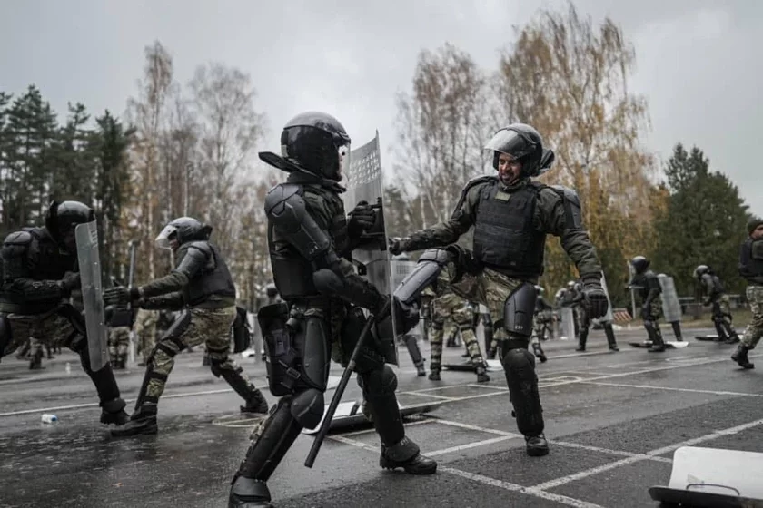 Livijskija siłaviki vučacca ŭ Biełarusi razhaniać pratesty