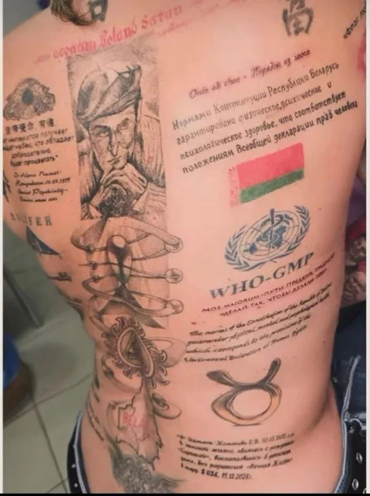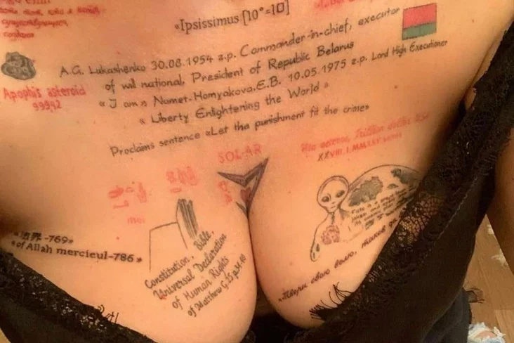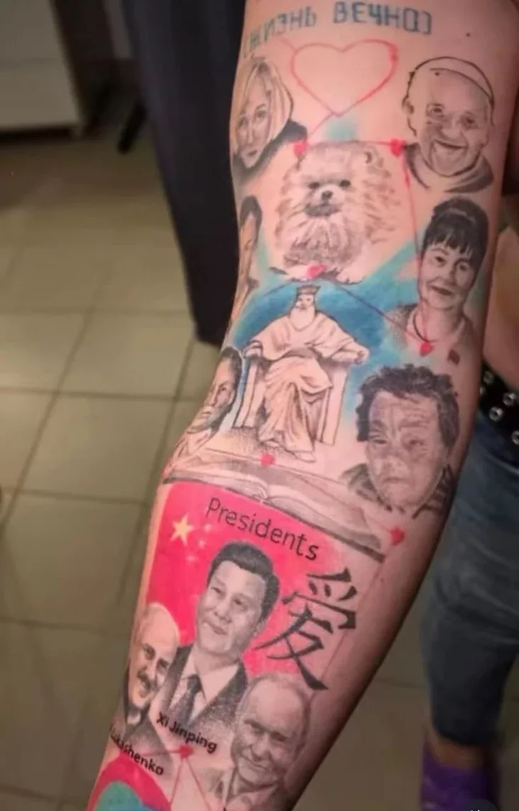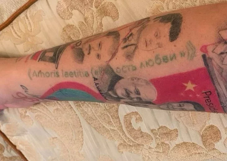 Biełaruska nabiła na ciele partrety Łukašenki i jaho synoŭ, Umki, Pucina dy Si Czińpina