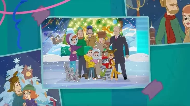 Jak stała viadoma, prezidenta Rasii namalavali jak piersanaža papularnaha multsieryjała. Na apublikavanych kadrach jon pakazany razam ź viadomymi hierojami «Prastakvašyna» — Dziadziem Fiodaram, katom Matroskinym, Šarykam, paštaljonam Piečkinym i inšymi.