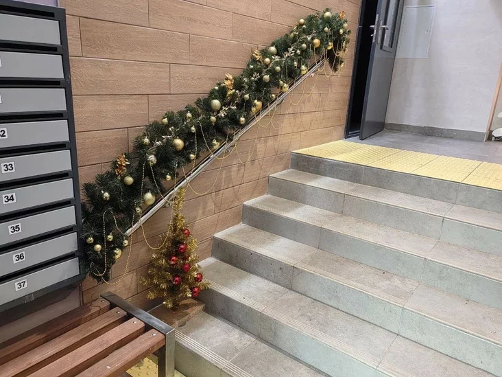 «Žylcy skaapieravalisia i samastojna dakupili materyjały dla dekoru: pienapłast dla jalinak, hirlandy, vianki na dźviery, kancylarskija drobiazi nakštałt skotču, klej. Jany taksama dali ofisnuju papieru dla padviesnych upryhažeńniaŭ i pakavalnuju papieru dla karobak. Upryhožyli šmat čaho: i ŭvachodnyja dźviery, i choły pierad liftami, i tambury, i lifty, i navat pieršy pavierch».