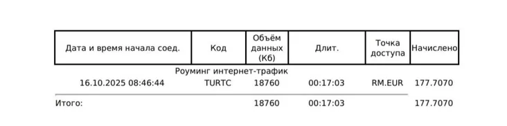 U 08:46 16 kastryčnika 2025 hoda abanient u sietcy apieratara Turcyi vykarystaŭ 18 760 KB internet-trafiku, naličeńni skłali 177,707 biełaruskaha rubla z ulikam PDV. Źviestki ab inicyjavanych abanientam internet-złučeńniach zafiksavanyja jak abstalavańniem kampanii A1, tak i apierataram-partnioram.