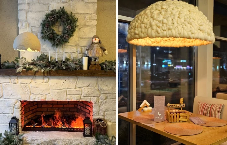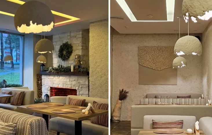 Što tyčycca afarmleńnia, to stvaralniki pasprabavali zrabić staŭku na ŭtulnaść i kazačnaść. Interjer stylizavany pad sielskuju chatu ci navat «hniazdo»: fakturnyja lapnyja ścieny, vialikija puchnatyja śviacilni ručnoj pracy, maleńkija lampy ŭ vyhladzie pałavinak jajek i štučny kamin.