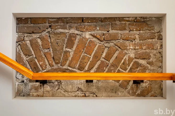 Taksama ŭnutry budynka stvaryli novuju vintavuju leśvicu z hranitu.