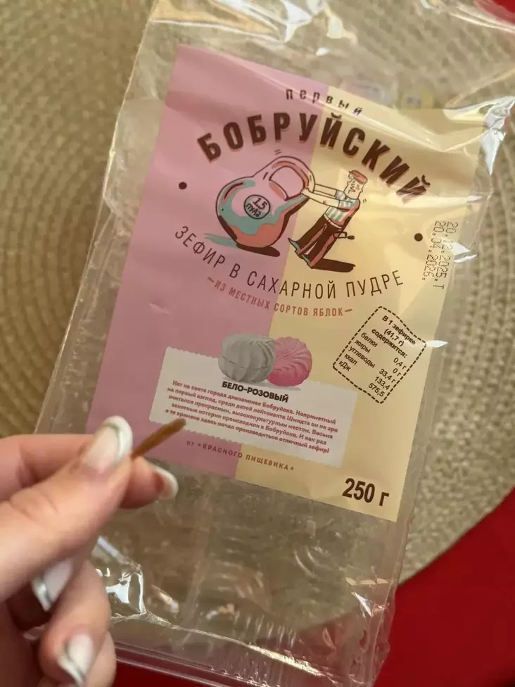 Ziefir byŭ vyrableny na babrujskaj kandytarskaj fabrycy «Čyrvony charčavik». Žančyna napisała ŭ Threads, što joj paščaściła nie dać hety ziefir dziciaci, i zaklikała inšych być uvažlivymi padčas ježy.