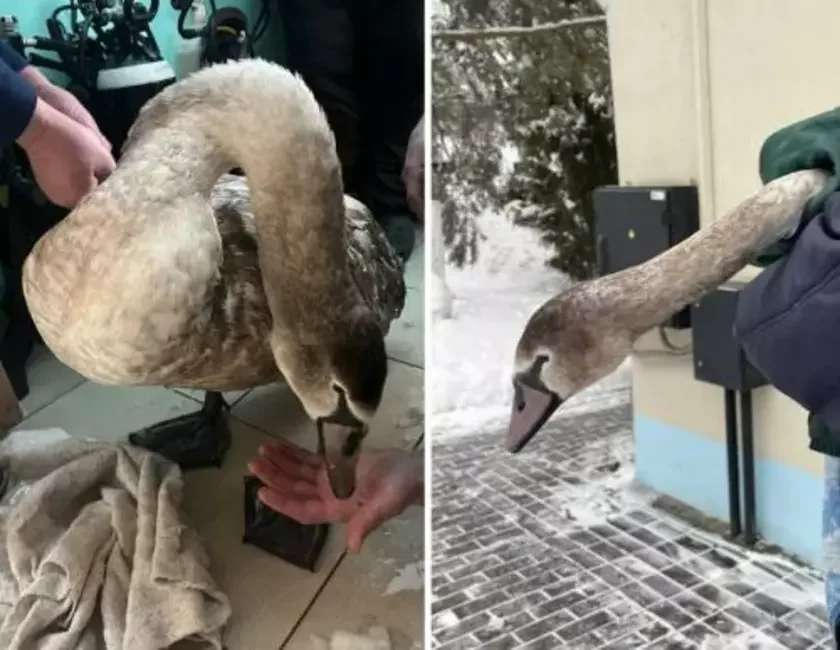 Na dapamohu joj apieratyŭna pryjšli rabotniki kamunalnaj słužby, jakija dapamahli pieranieści lebiedzia na vyratavalnuju stancyju «Kamsamolskaje voziera».