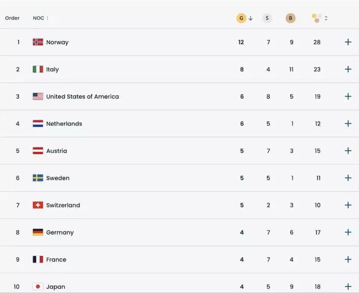 U nieaficyjnym kamandnym zaliku ŭpeŭniena lidziruje, jak pa ahulnaj kolkaści miedaloŭ, tak i pa zołacie, Narviehija.