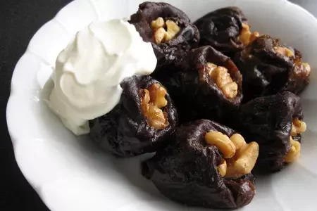 Desiert z čarnaślivu i hreckich arechaŭ ź viarškami: vytančany smak i sucelnaja karyść22