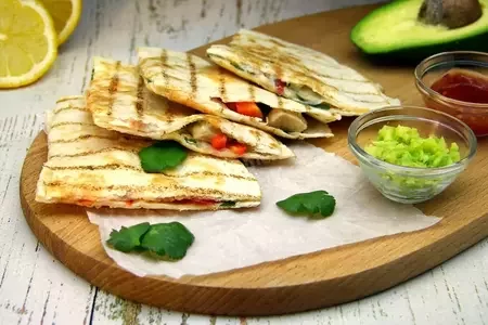 Mieksikanskaja kiesadylja z kurycaj, fasolaj, harodninaj i syram11