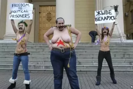 Актывісткі Femen раздзеліся каля беларускага КДБ111