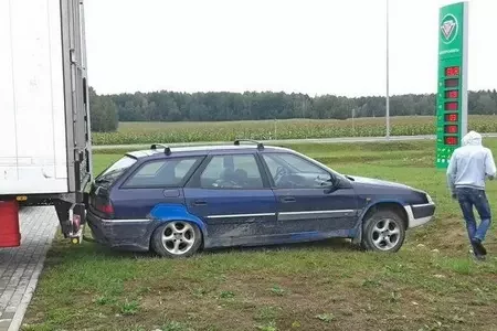 У Брузгах фура заднім ходам выштурхнула Citroen з паркоўкі1
