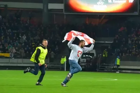 БАТЭ хоча спагнаць 5 тысяч еўра з заўзятара, які выбег на поле са сцягам76