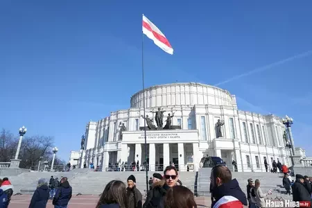 Плошча каля Оперы скандуе «Жыве Беларусь» ВІДЭА9
