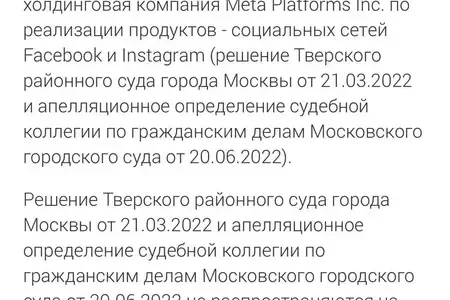 Мінюст РФ унёс карпарацыю Meta ў рэестр экстрэмісцкіх арганізацый