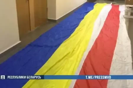 Затрымалі пяцярых мінчукоў, якія вывесілі беларускі і ўкраінскі сцягі на 19-павярховіку