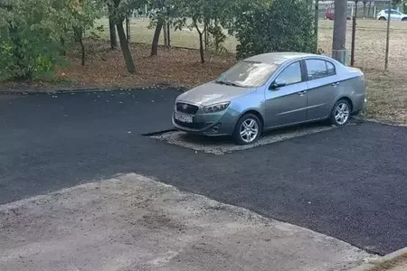 У адным з двароў Мінска асфальт паклалі вакол прыпаркаванага аўто ФОТАФАКТ1