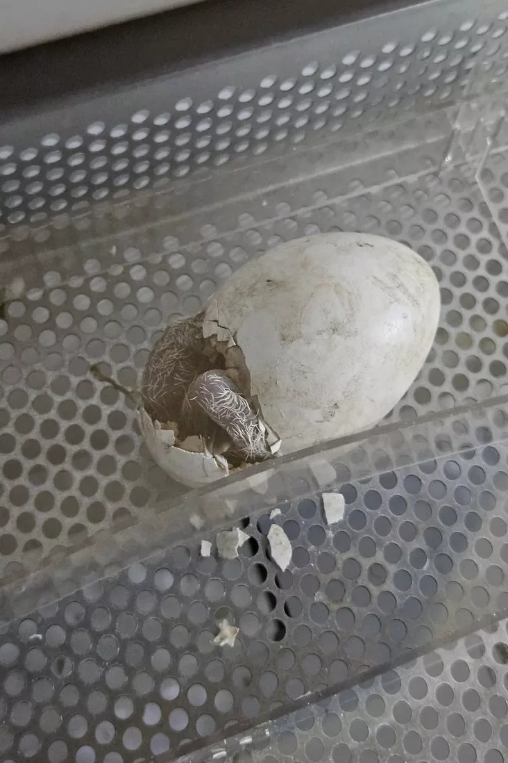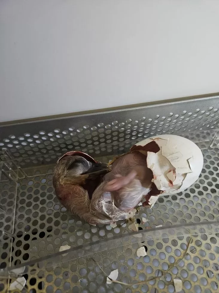 The eggs that remained in the nest were replaced with chicken eggs. The male diligently incubated them for several days, but on the fourth day, instinct took over, and the bird flew off to forage for food.