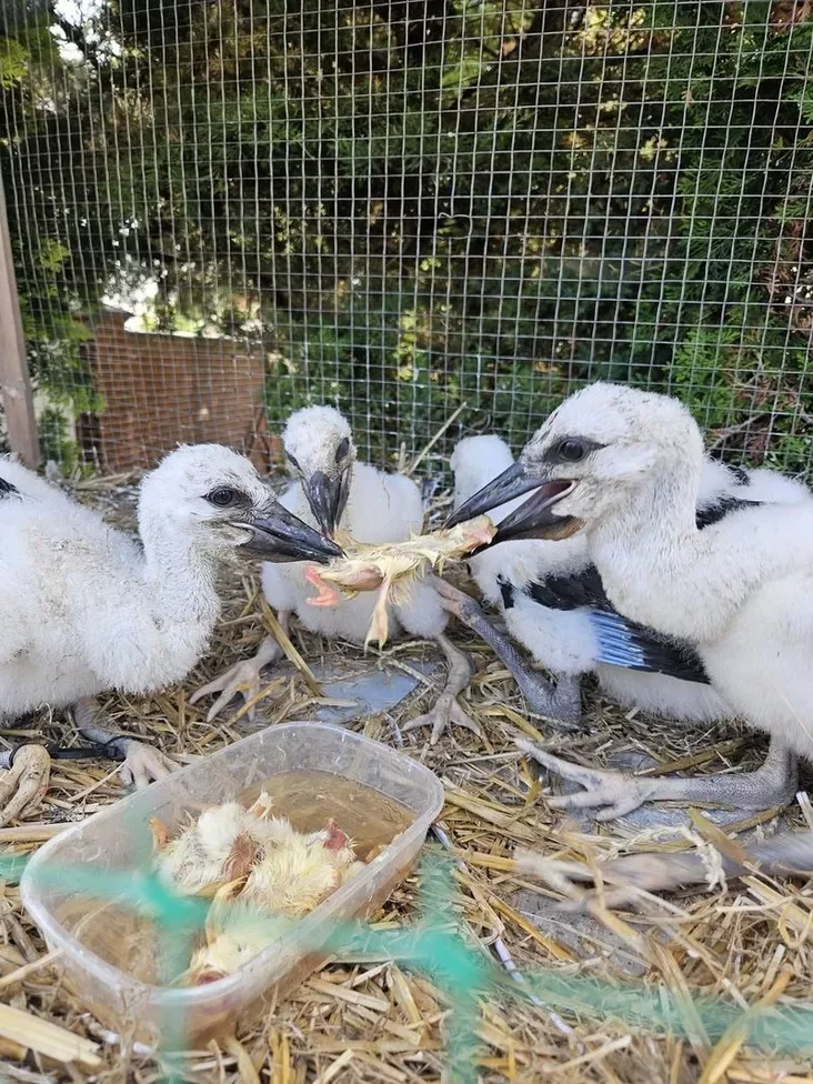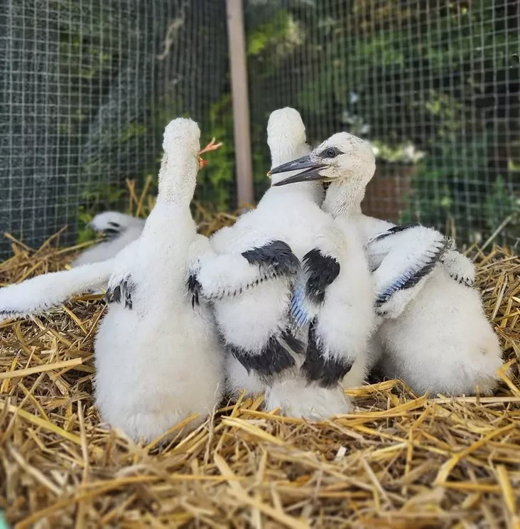 In the "Brest Stork House", abandoned chicks are raised in special aviaries with their wild relatives, so that they have minimal contact with humans.