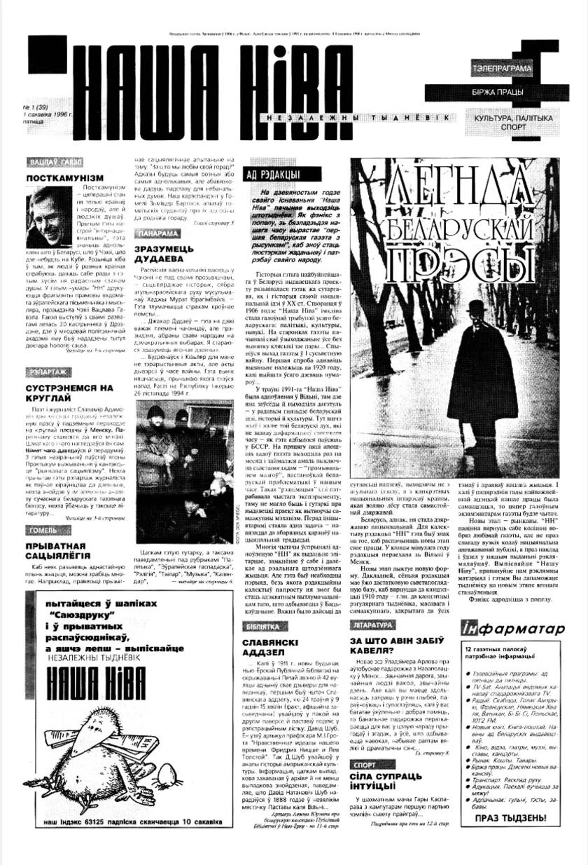 (The first issue of "Nasha Niva" in 1996 was released on March 1.)