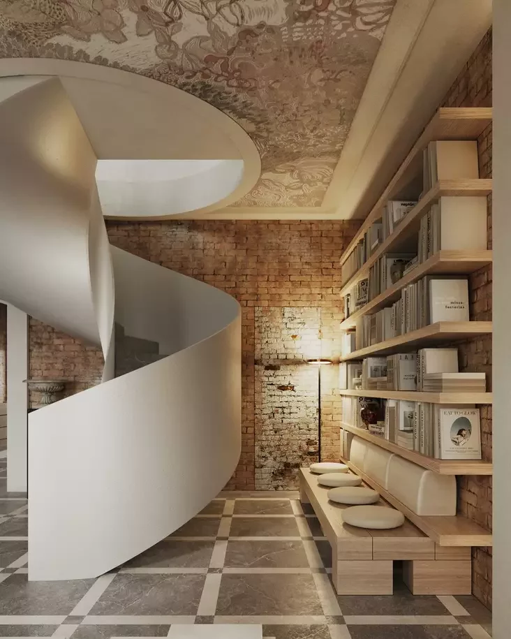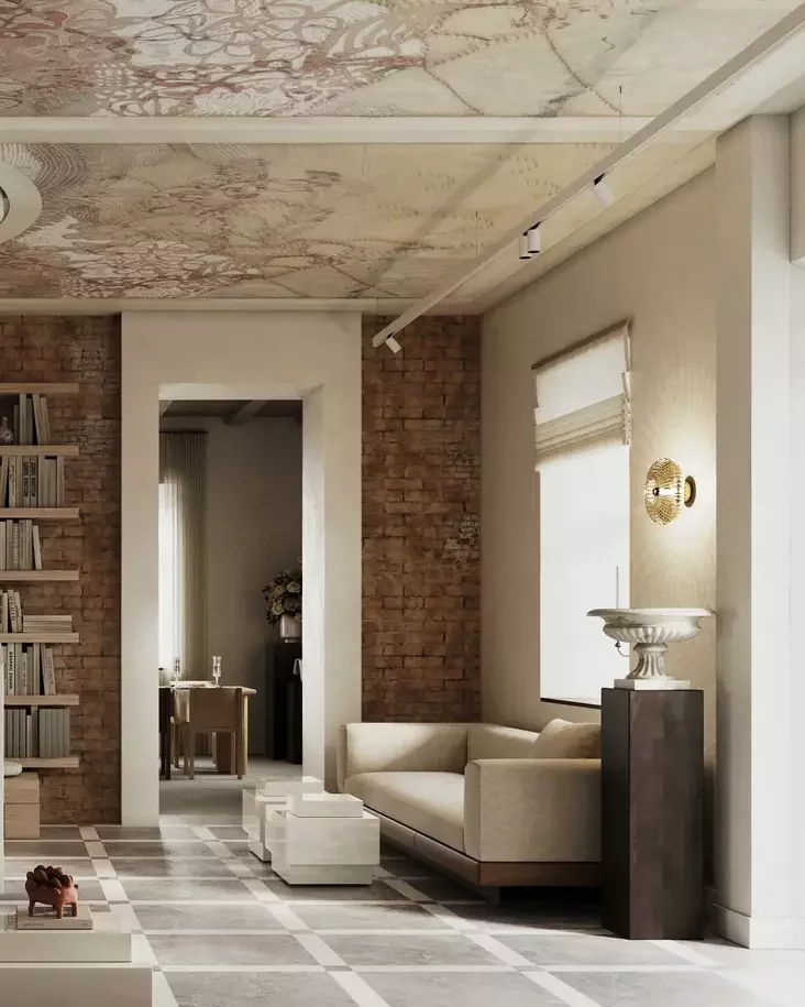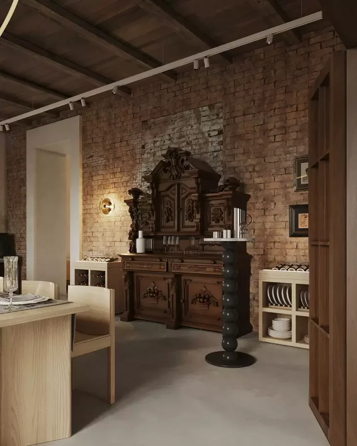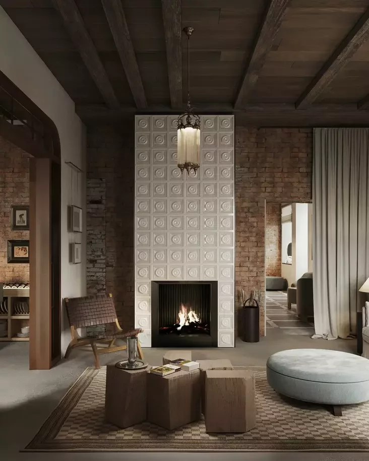 The project by ZROBIM architects shows that the designers tried to preserve the original spirit of the estate as much as possible and incorporate old elements into the interior — for example, brickwork and tiles.