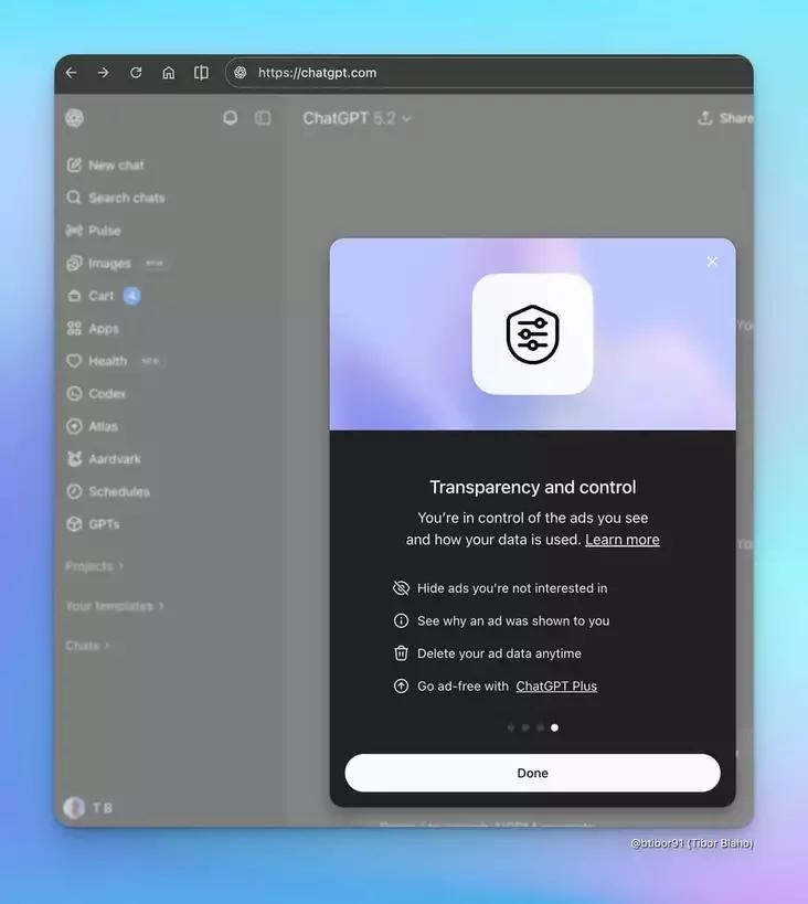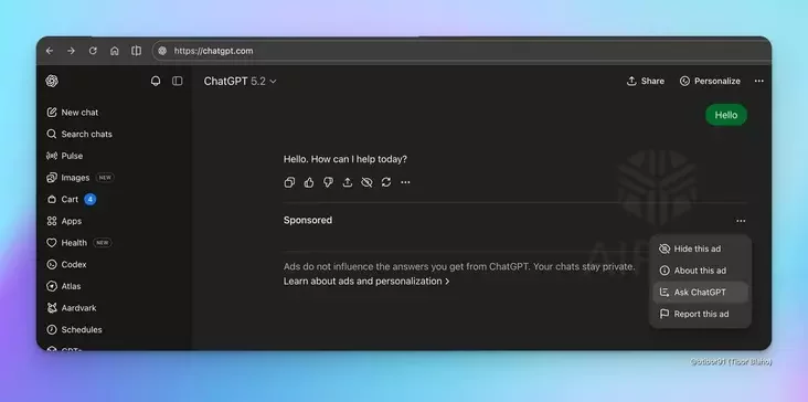 From a user experience perspective, the first implementation looks quite restrained. Users will also be able to hide specific ads via the menu and even ask ChatGPT about the ad content if they need details without clicking the link.