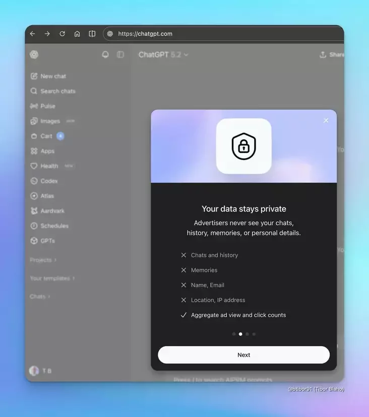 The technical side of the issue causes the most discussion: the ad selection algorithm will rely on both the topic of your current conversation and the history of previous chats. OpenAI assures that advertisers will not get direct access to your dialogues; only generalized statistics of views and clicks will be available to them.