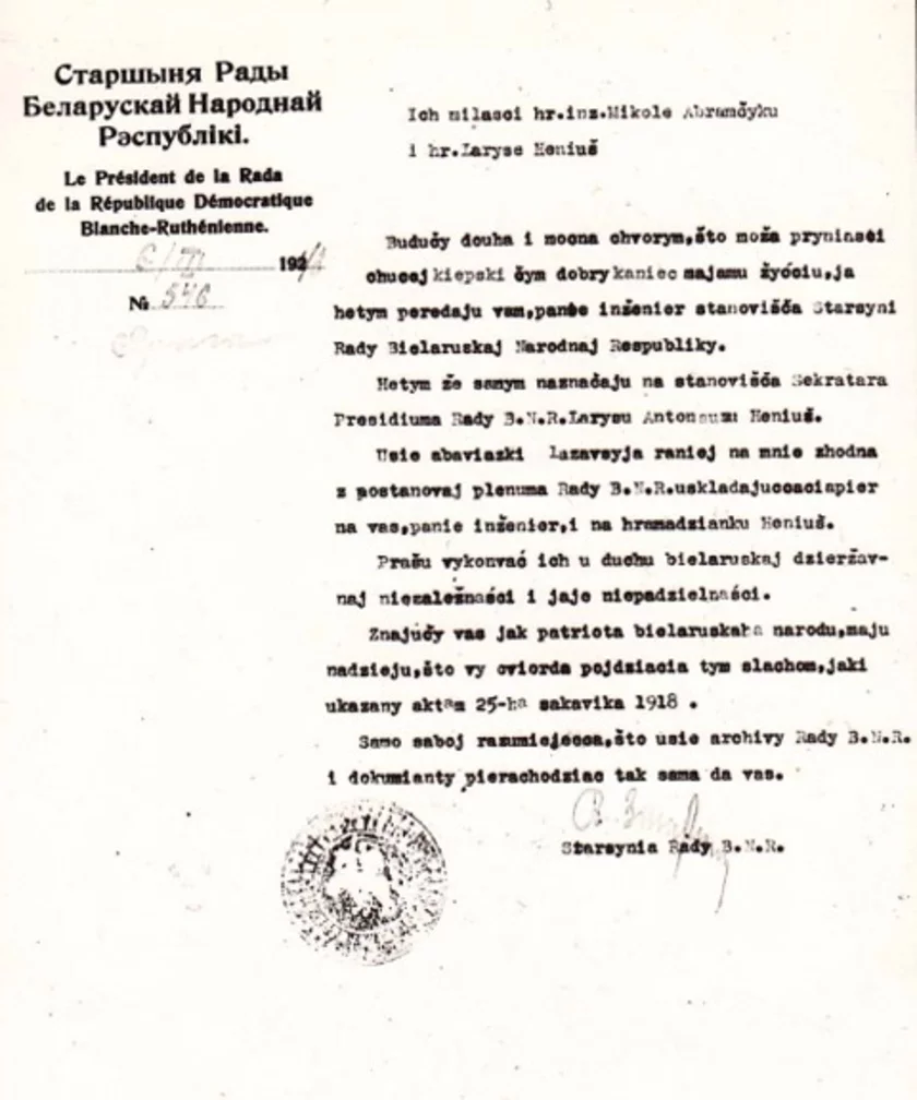 Так, 14 марта 1943 г. умер в Праге Председатель Рады БНР Василь Захарка. А накануне, 6 марта, он составил завещание, в котором передавал свой пост инженеру Миколе Абрамчику. Это завещание стало основным политическим документом для послевоенной белорусской эмиграции на Западе.