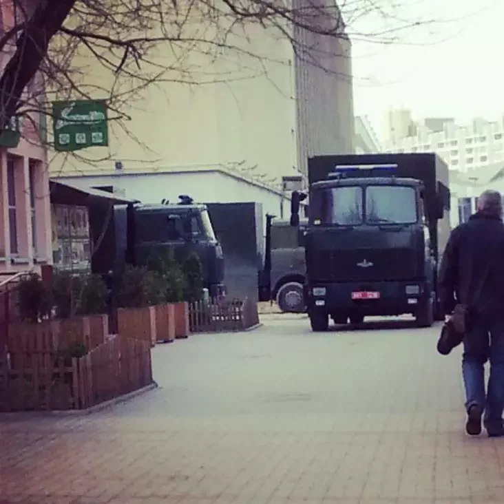 Как сообщают наши корреспонденты, во дворах за «Лидо» на Якуба Коласа стоят два автобуса с милицией и несколько меньших транспортных спецсредств.
