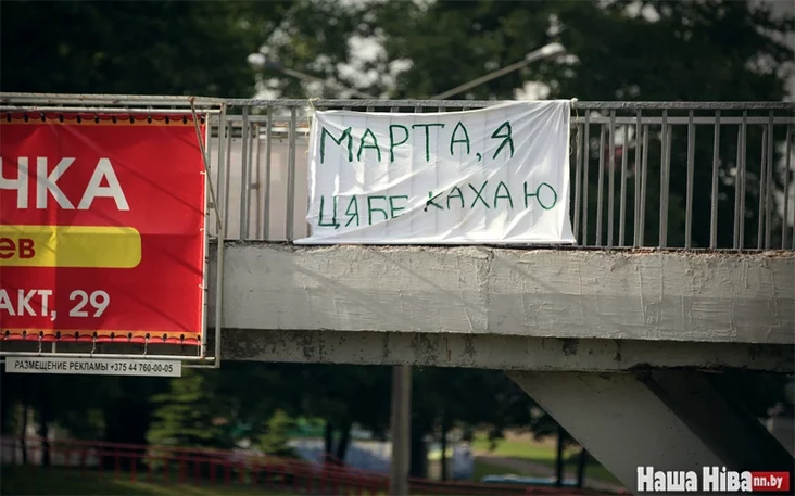 На мосту в центре столицы парень вывесил растяжку с надписью «Марта, я тебя люблю!»