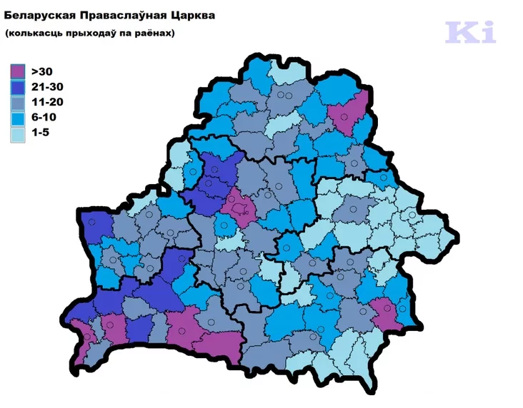 Кроме того, количество приходов БПЦ совпадает с количеством приходов РКЦ в Щучинском и Сморгонском районах, с количеством общин ХВЕ — в Ганцевичском, Ляховичским, Кличевском, Костюковичском, Кормянском, Светлогорском и Россонском районах, с количеством общин ЕХБ — в Быховском, Краснопольском, Круглянском и Чериковском районах Могилевской области.