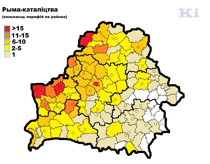 При этом в ряде районов в Могилевской и Гомельской областях вообще нет зарегистрированных католических приходов. Наибольшее число католических приходов (более 15) действует в Гродненском (вместе с Гродно), Браславском, Лидском районах и Минске.
