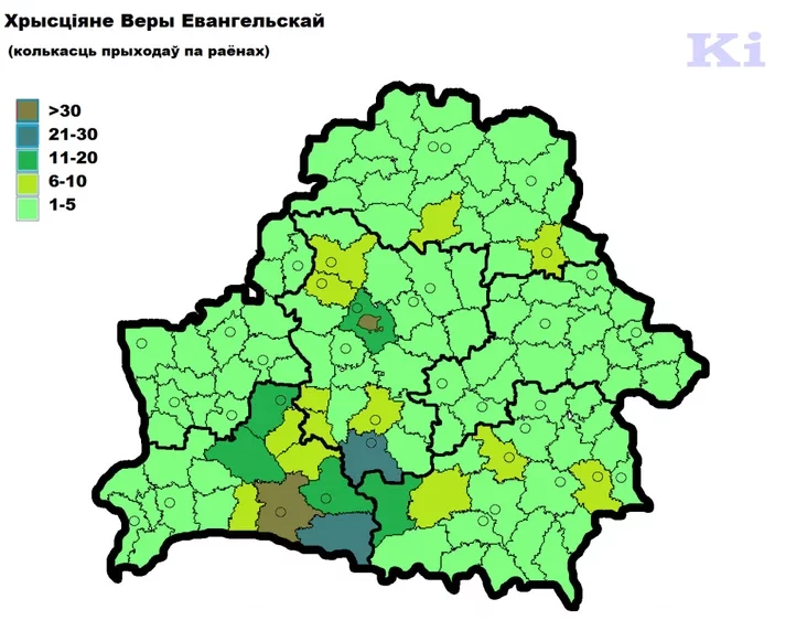 Христиане Веры Евангельской представлены во всех районах Беларуси, причем равномерно и в относительно небольшом количестве (1… 5 общин).