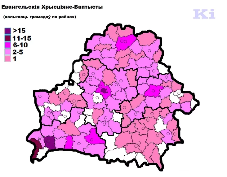 Причем районы, где не зарегистрированы общины ЕХБ, имеются во всех областях. Преобладают же они на Брестчине. Более 15 общин ЕХБ в Минске и Кобринском районе.