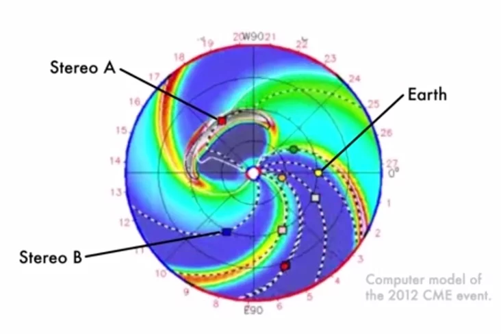 23 июля 2012 года два плазменных облака, исходившие от Солнца, чудом пролетели в непосредственной близости от Земли.