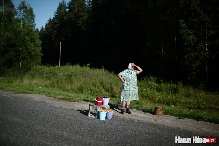 У людзей паспалітых іншы бізнэс — яблыкі прадаюць у вёдрах, чарніцы рэдкія ўжо, лісічкі — апошнія, бо спёка. Новы павеў — людзі масава выносяць і садовыя дурніцы, якія толькі нядаўна пачалі саджаць.