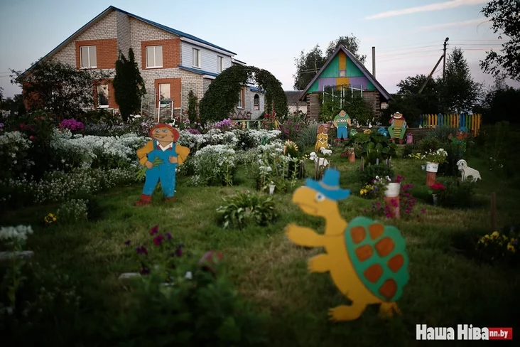 Не можам не спыніцца каля фантазійнага садка ў вёсцы Вялікая Вядрэнь. Чаго і каго там толькі няма!